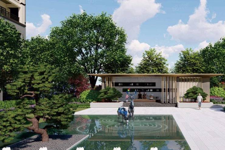 建筑规划:小区由 12 栋围合式小高层洋房组成,建筑风格为现代中式,沿承宋代古雅建筑风韵,融合现代建居美学。