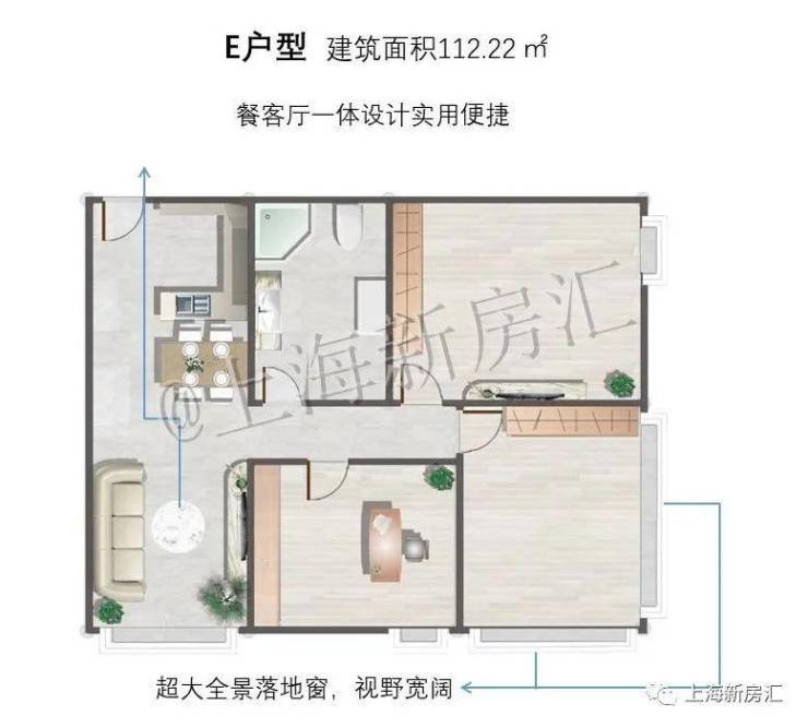 稀缺270°视野3房,朝南西边套(本项目最好的朝南位置),中高区楼层,无敌景观视野
