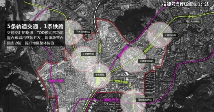 深圳少有的“一个枢纽站、三条地铁线、六条快速路”交汇的TOD枢纽交通中心,未来可以加强为5条轨道交通及综合一个枢纽站。