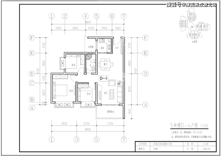5#号楼D4户型90.04㎡(三房两厅一卫