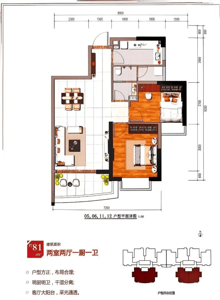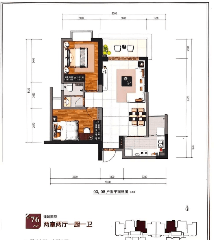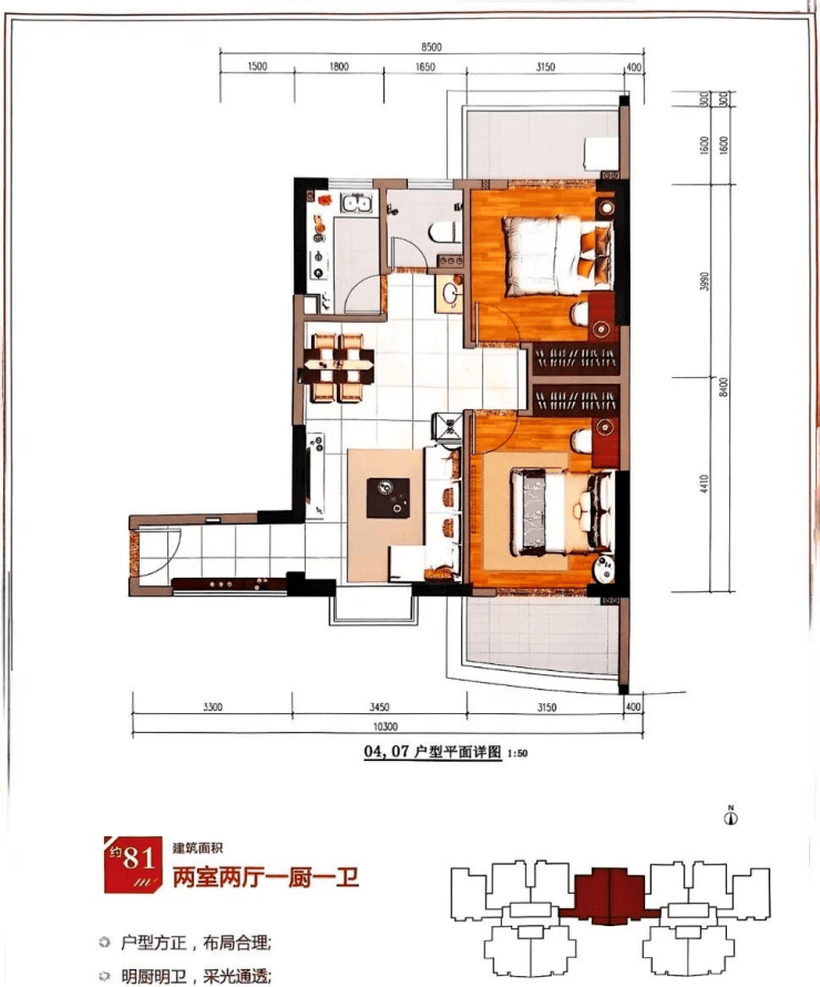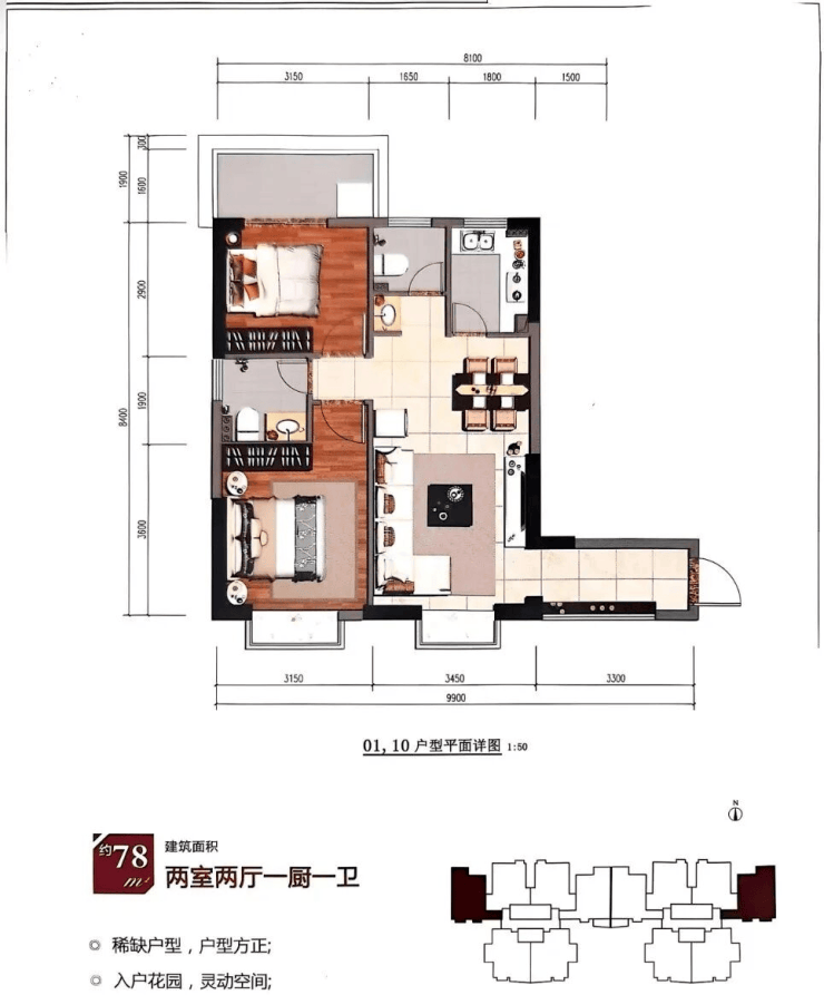 在售面积:60平(一房)、73-75-78-80-85平(两房)