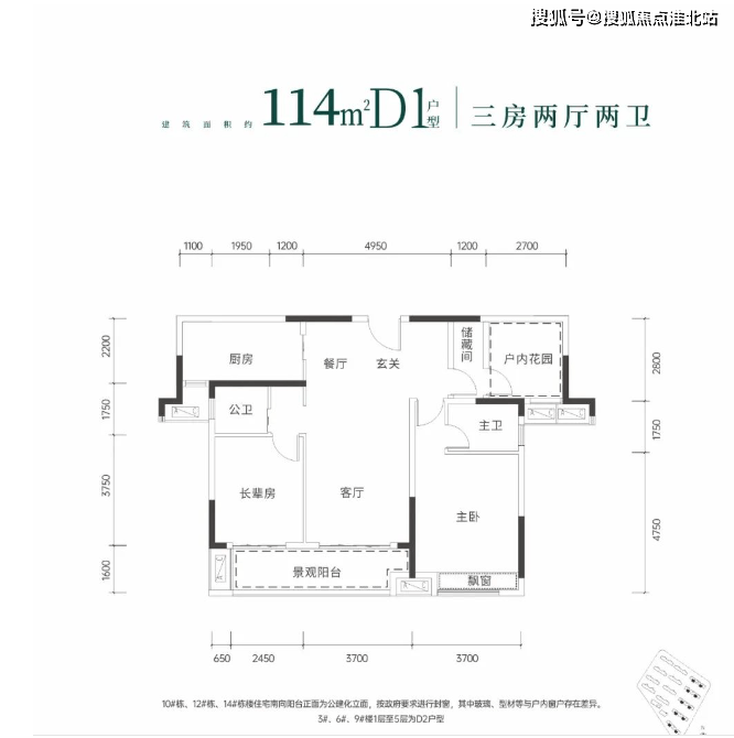 建筑设计:采用板楼设计,标准层高 2.9 米,小高层梯户比 2/3,洋房梯户比 1/2,得房率高,小高层为 90%,洋房达 93.8%。