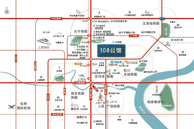 教育配套:附近有上海外国语大学、上海大学等高等院校,还有市北中学、风华初级中学、大宁国际小学、闸北实验小学等市重点高中及一梯队小学。