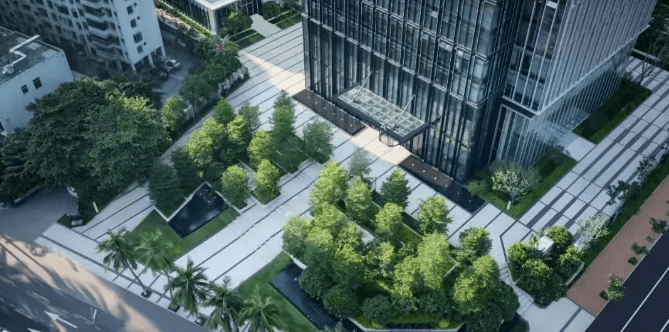 设计理念:以 “森林绿洲” 为景观设计主题,结合海口热带海洋气候特征,采用大量乔木覆盖户外通行空间,营造森林中漫步的体验感,斩获 2022 年度缪斯(MUSE Design Award)商办类景观设计金奖。建筑采用轻奢极简的玻璃幕墙提升项目的城市界面展示形象,室内融入地方海洋文化特色。