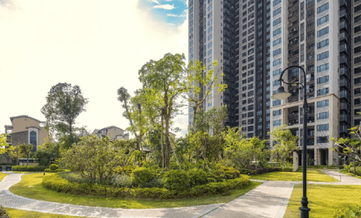 建筑规划:小区产品类型包括别墅和墅区洋房,采用围合式建筑布局。整体建筑风格融合了现代与传统元素,高层住宅与别墅相得益彰,超宽楼间距保证了充足的采光和通风。