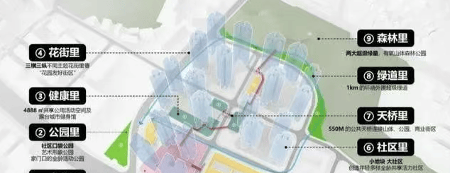 连廊系统:规划了约 500 米的立体城市连廊系统,串联全龄教育、精致商业、品质人居、活力运动、公园休闲等功能板块。