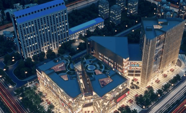 建筑布局:由四栋复合型商业建筑群组成,采用三条纵向商业主街、两条横向步行街的商业布局,实现铺铺相连、铺铺临街、上下相通的便捷动线。