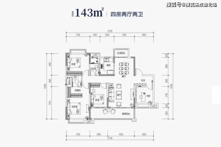 规划户型为约95-143㎡南向江景三四房,均为双阳台结构,通透无遮挡,视野开阔,通风采光俱佳。