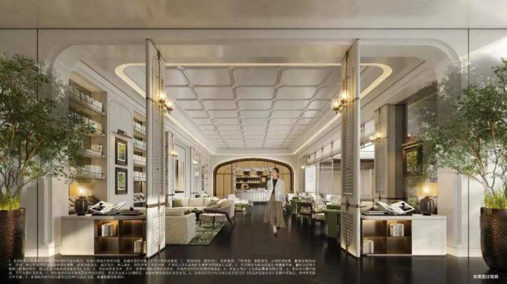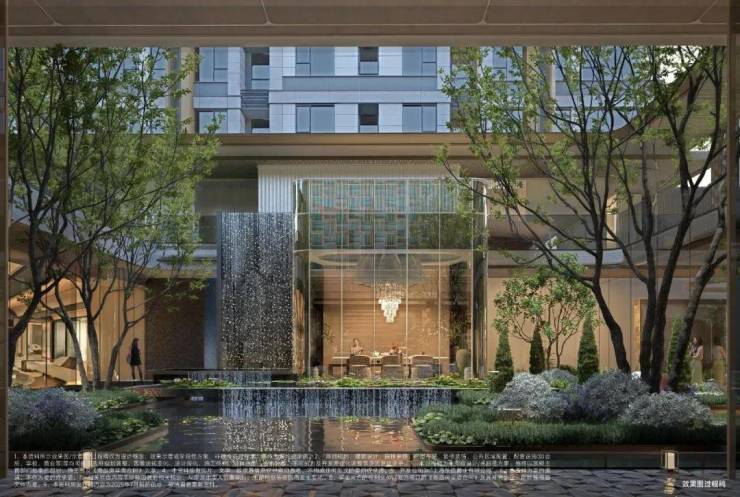 品质归家轴:贯通主入口+对景空间+架空层+社交花园港湾,形成一体化泛会所客厅空间;