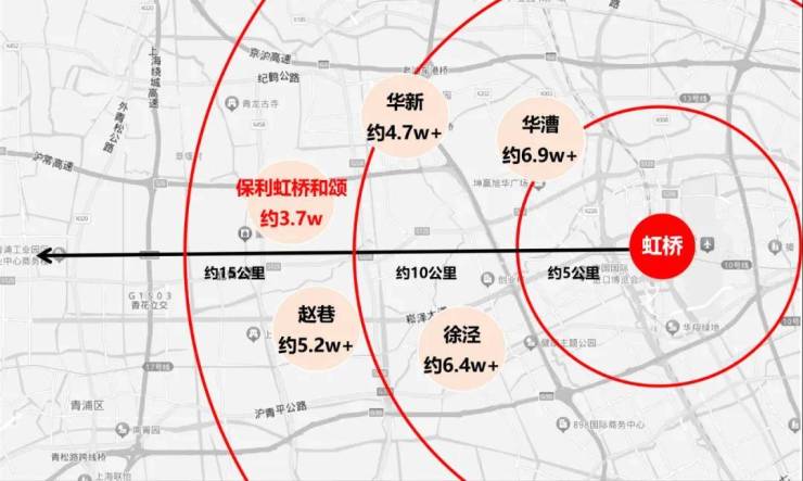 除此之外,「保利虹桥和颂」往南直线距离约1.5公里处便是崧泽高架,上高架后便可直达大虹桥核心!