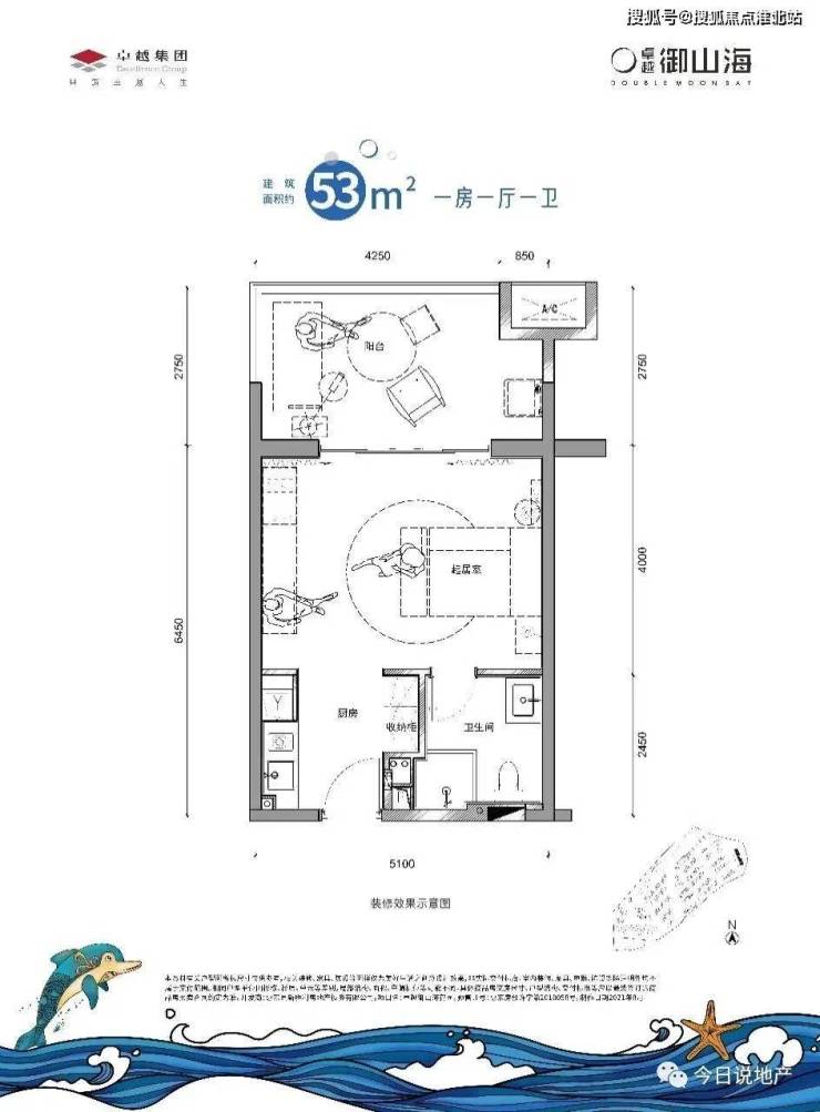 ▲53㎡样板间实景图 片区在售唯一开间达5.1米单房户型 ,视觉更宽广,景观面丰富动人, 阔绰阳台,承载舒阔假日时光, 超大采光面,一览山海景观。