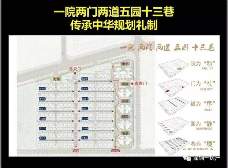 从北面“易安门”进入府道,左右两边分布着13个“坊门”,每一个坊门用一个“词牌名”命名。