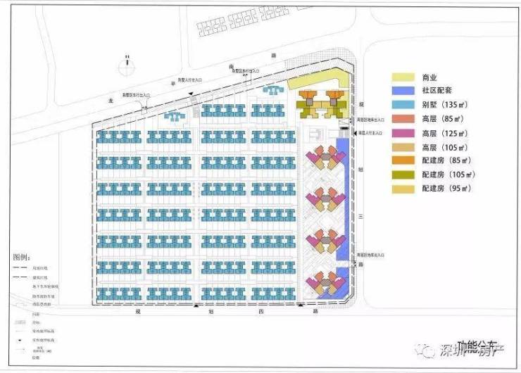 小区主以别墅为主,位于鹰咀山脚下,东侧有6栋高层分布,别墅与高层相分离,拥有独立的人行及车行出入口。