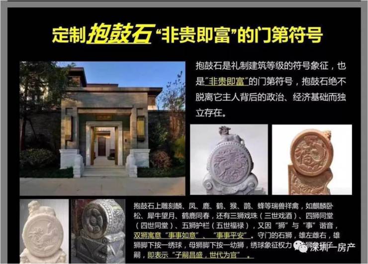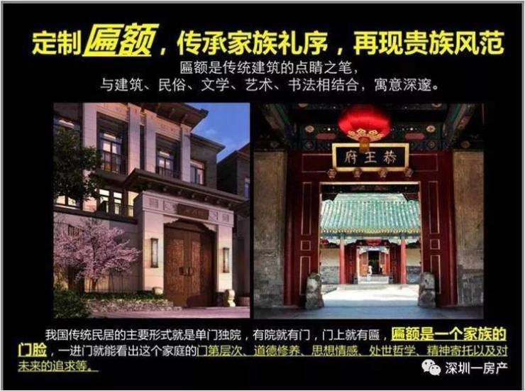 可定制门头匾额(某某府、某某阁,或者自认为优美的词句),门前的两块抱鼓石也可以定制(麒麟卧松、犀牛望月、鹤鹿同春...)