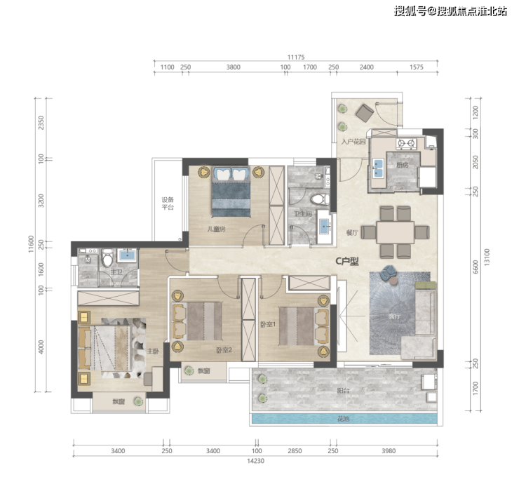 住宅户型:建筑面积约111-141㎡三至四室