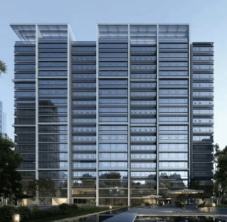 建筑立面:高层采用天青色铝板与Low-E玻璃,叠墅采用天青色釉面陶板,兼具现代简约与时尚摩登。