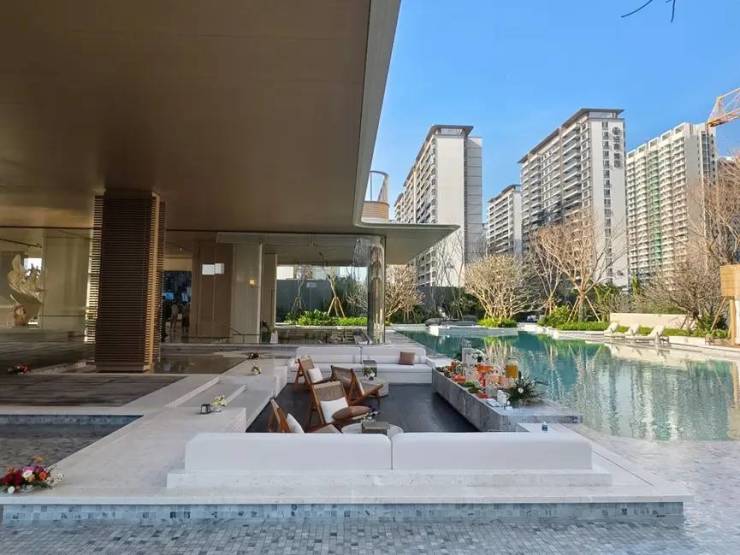 社区:无边际泳池、星空瑜伽平台、全龄园林;89% 住户享公园 + 远景海双景