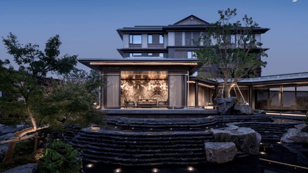 园林景观:以蜿蜒水系串联历史与当代,打造自然与艺术共生的精神原乡,营造出江南水岸的诗意氛围。