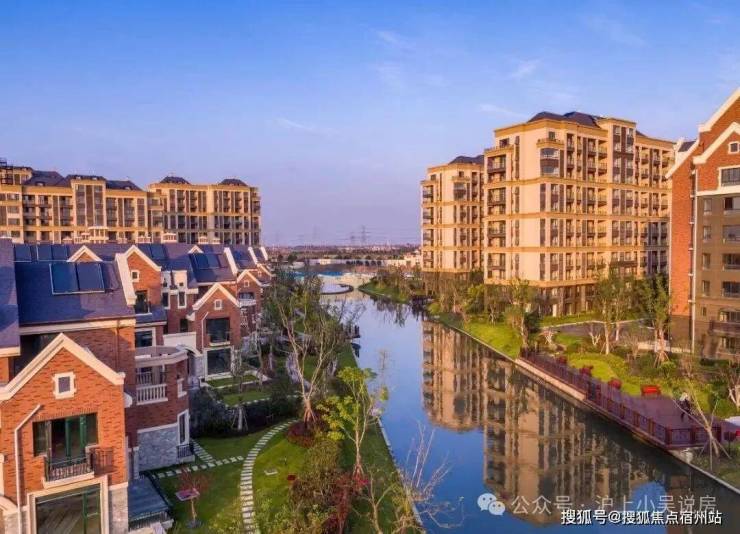 经典英伦建筑,掩映在丰茂的植被之中,生态人文住区,盛献清新优雅生活,天然河道穿小区而过,沿河岸布局各式亲水景观平台,打造滨水而居的江南风情。