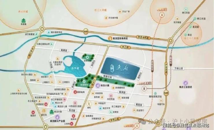 商业方面,项目南面约500米处有枫湾路菜市场及盒马超市;南面约800米处有肯德基、联华超市、农⼯商超市等配套。项目旁边在建的五星级劲霸枫泾酒店,这将是金山第一个五星级酒店。