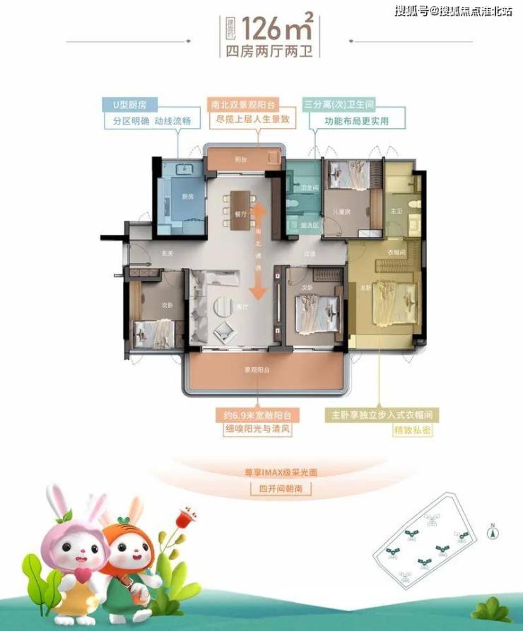 126㎡户型:一般是四房两厅两卫,房间尺度更为宽敞,可设置书房、儿童房等功能空间,适合改善型家庭。
