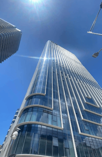 建筑特征:双子塔或独栋高层建筑,现代玻璃幕墙设计,楼高约150-180米。