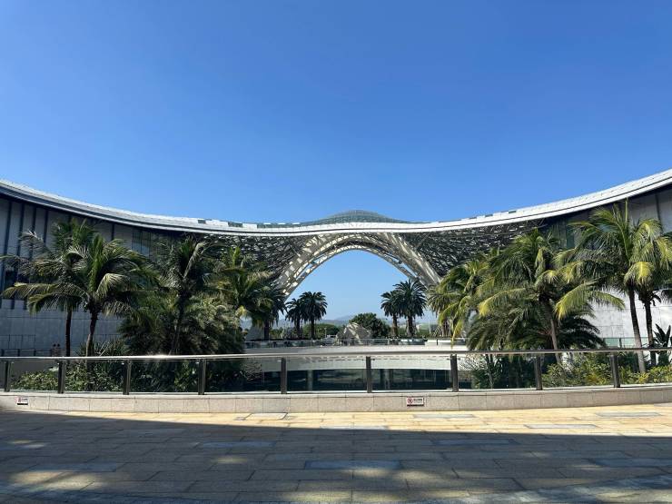 建筑设计:由国际名师伍兹贝格设计,融合三亚黎族竹编工艺与三角梅元素,寓意 “绽放鹿城”,打造国际商务绿谷。