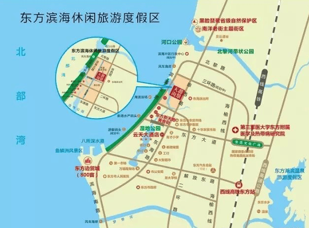 位于东方市滨海旅游度假区内,紧邻北部湾海域,步行约300米即可到达海边,既能享受海景视野,又避免了直接临海可能带来的潮湿问题。