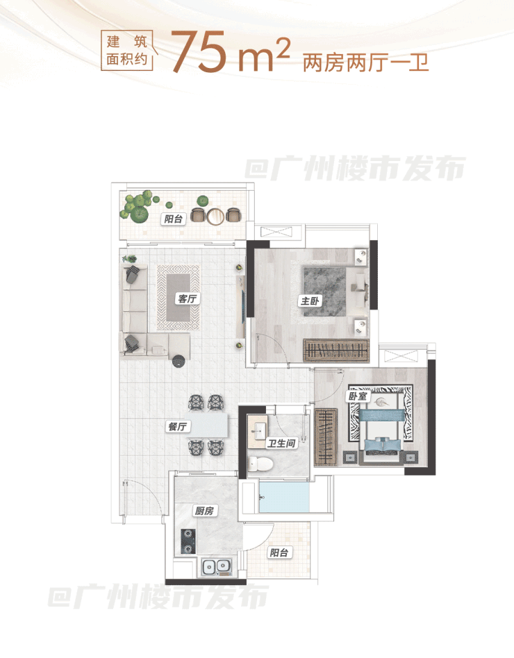我们先来看下,适合刚需家庭上车的约75平实用2房。