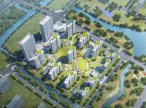 园林景观:携手深圳奥雅景观设计,打造约40000㎡的沉浸式海岛度假园林,包含7重景观、4000㎡下沉式中央大草坪、萌宠乐园、飞鱼乐园等全龄化生活场景。