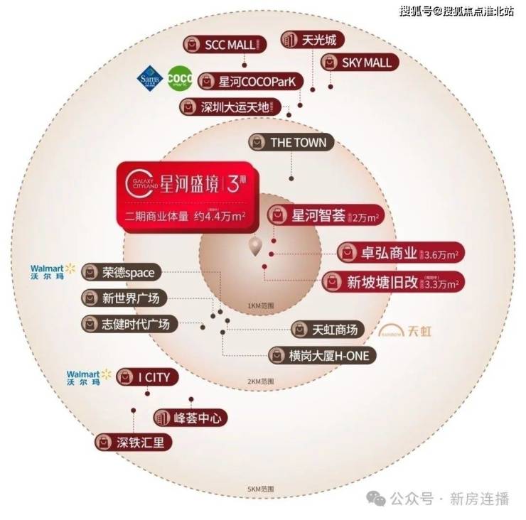 家门口超13万㎡商业(盛境约4.4万㎡,卓弘星辰约3.6万㎡(在建)、智荟约2万㎡),约2公里范围内覆盖30万㎡商业,繁华商圈拥簇,酣熟生活即刻兑现。5公里内更享百万平商业,星河COCOPark(龙岗山姆会员店)、SKY MALL、天光城等知名商业体环伺,尽揽都市繁华便利。
