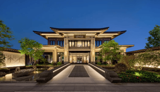 王府中式风格:采用九脊歇山顶、五开三启门等传统建筑元素,打造“一府五进”礼序园林,融合网师园、留园等江南园林精髓,亭台楼阁、水景园林错落有致,兼具东方美学与居住舒适性。