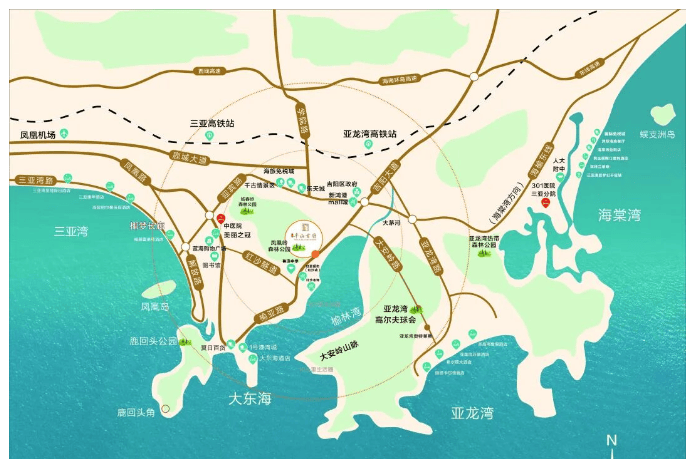 项目地处三亚城芯,位于大东海榆亚路中段,背靠凤凰岭国家4A级景区,面朝榆林湾内海,周边有600亩红树林湿地公园。交通便利,距高铁站、机场约30分钟车程,毗邻大东海商圈,生活配套完善。