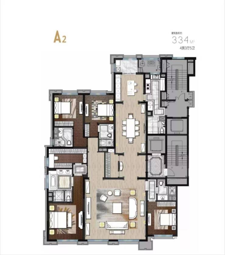A2户型/建筑面积约334㎡/4房3厅5卫