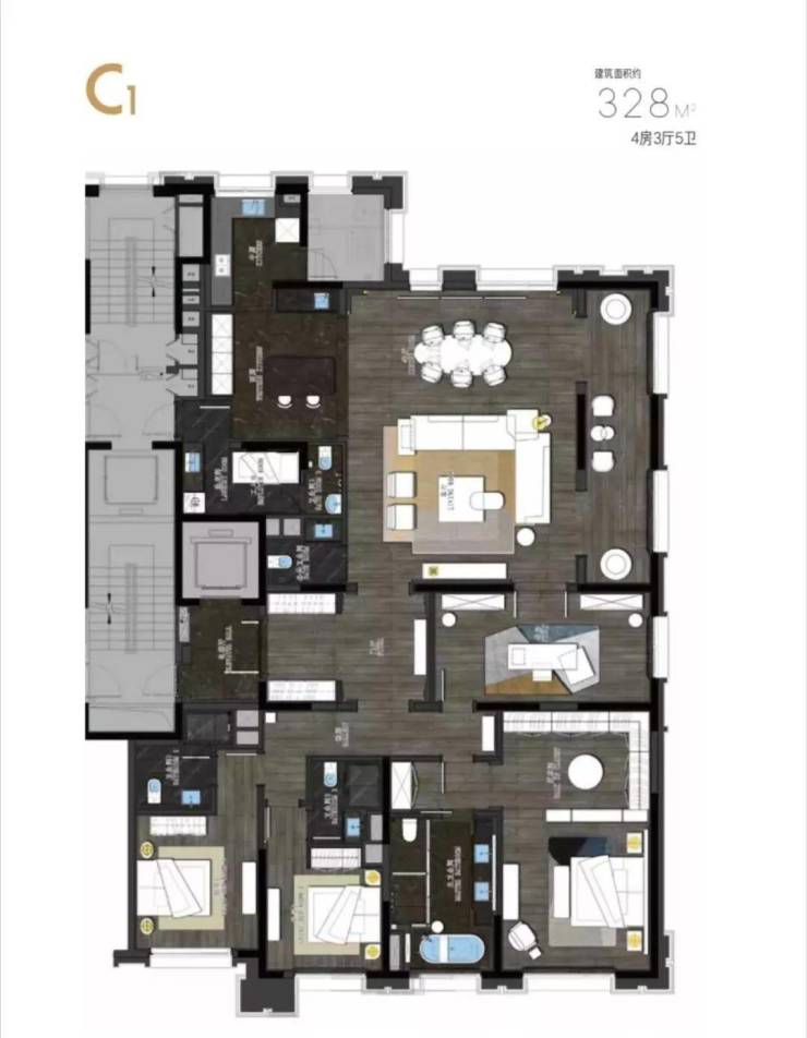C1户型/建筑面积约328㎡/4房3厅5卫