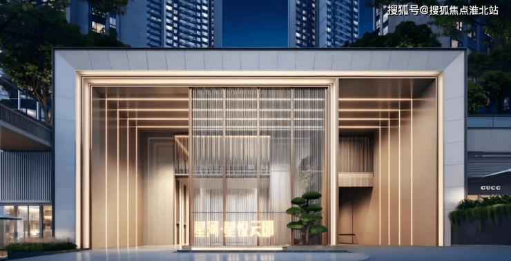 三进中轴:迎宾步道随入口大堂延展至中心庭院,以景墙营造意境。