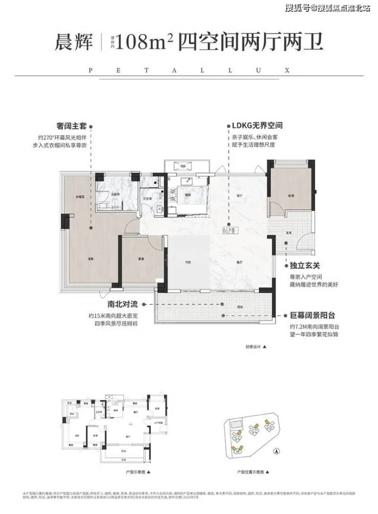 预算充足的购房者,可以考虑建面约95㎡的四房户型。对于追求更阔绰居住空间的家庭来说,建面约108㎡的四房户型无疑是不错的选择;约15米的南向超大面宽,主卧带步入式衣帽间,不仅增加了收纳空间,还提升了居住的私密性和奢华感。