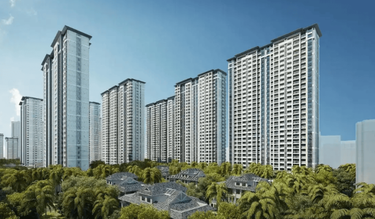 现状:一至三期已建成,多为实景现房 / 准现房;四、五期规划推进中;保留海南大酒店、省委门诊楼、第一办公楼等历史建筑;中央景观轴 “一轴两带、三场五园” 已呈现。