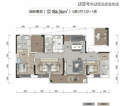 在售户型:在售建面约 127㎡(3 室 2 厅 2 卫)、142㎡(4 室 2 厅 2 卫)、186㎡(4 室 2 厅 3 卫)的毛坯住宅。