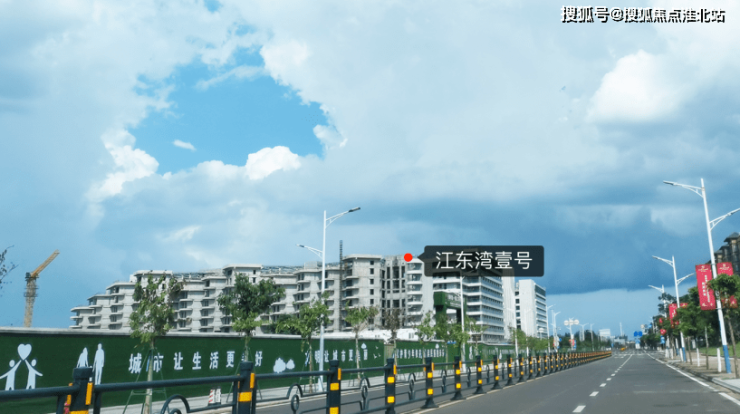 江东湾壹号,这个名头摆出来,还是有点气势的。之前远远看了一眼,印象中正面是一个抬高的售楼处,可以看到两侧建筑主体都在施工,体量不小。