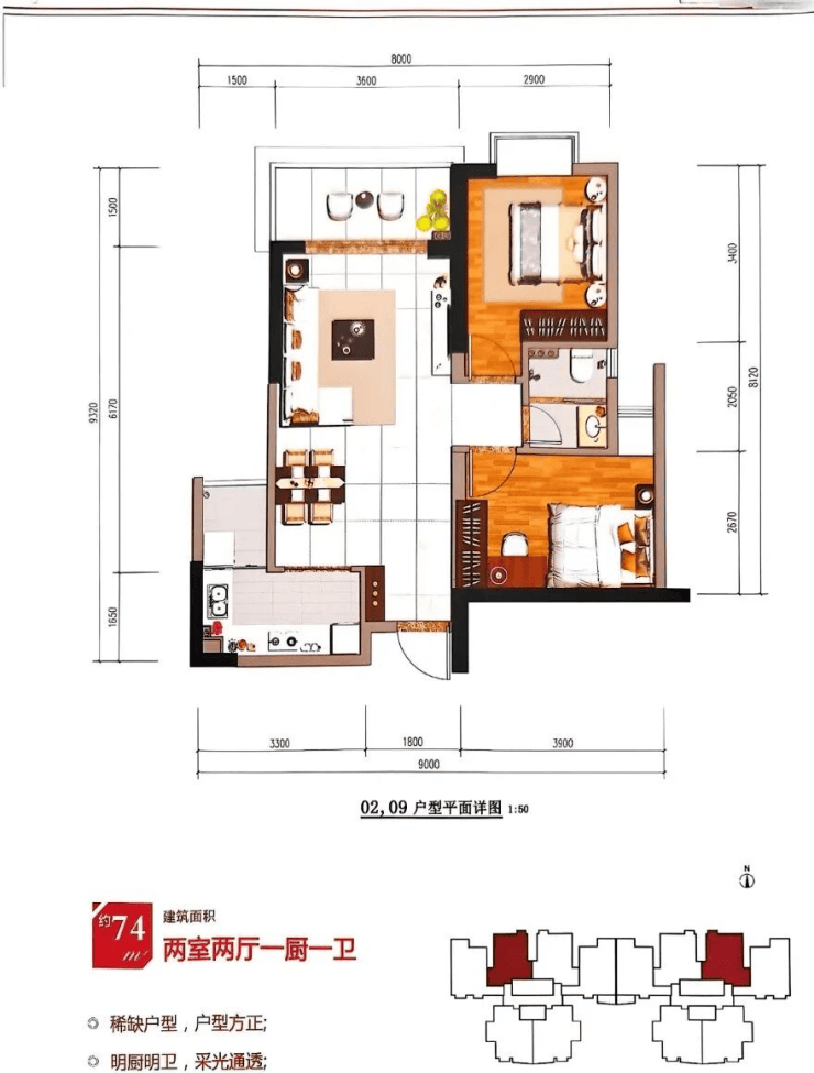 在售面积:60平(一房)、73-75-78-80-85平(两房)