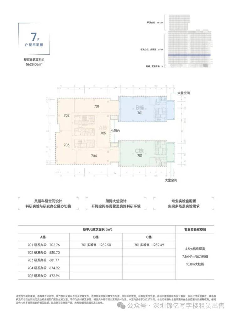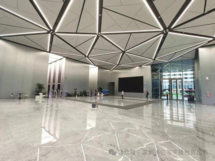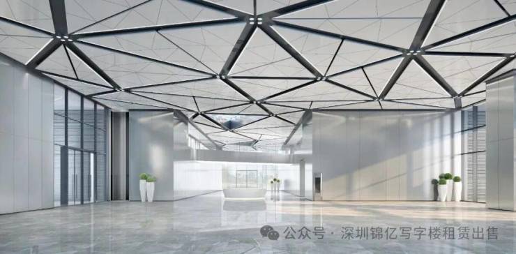 大堂设计:顶部预设展览挂钩、科技感空间设计、层高约10/6m、最大面宽约100m