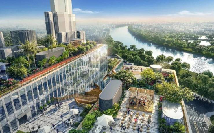 5条空中艺术连廊,与屋顶花园相连互通,串联具备宴会酒会、企业活动、文艺活动、社交沙龙等功能的花园空间