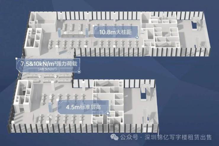 标准层高:约4.5m;空间柱距:约10.8m