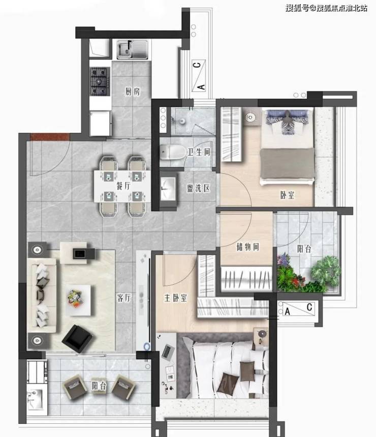 2栋02户型,约88㎡,3+1房2厅2卫