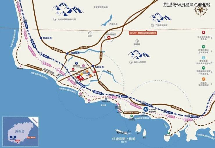 项目位于海南省乐东县九所新区高铁站旁,占据龙栖湾九所新城高铁商务区核芯。九所与三亚同处北纬18度黄金度假带上,全年平均温度25.5度,四季如春,光照充足,热量丰富,属于半湿润半干旱的气候,定位为滨海中心城市、健康旅游宜居之城,非常适合候鸟居住。