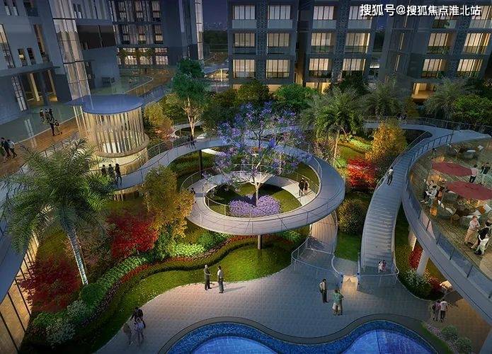 💦热带风情园林:小区园林以椰风海韵为引串联场景,展现绿荫遮蔽的热带景观,将人们从城市喧嚣中带进自然,回归养生秘境。