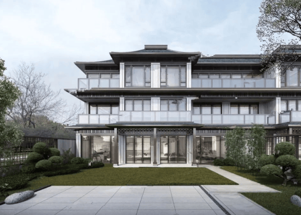 建筑风格:中式合院采用传统中式建筑风格,白墙黛瓦、飞檐翘角、雕花窗棂等元素尽显古典韵味,同时融入现代建筑技术,提升居住的舒适度;叠拼别墅和高层则在现代风格中融入中式元素,与合院风格相呼应,整体协调统一。