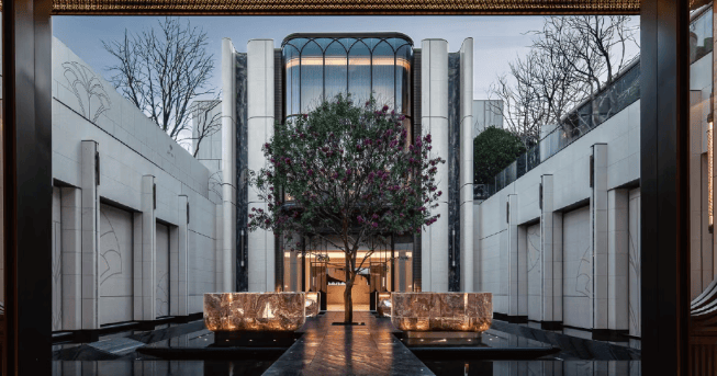 建筑设计:采用曲面流体建筑、金镶玉顶冠设计,融合海派艺术元素,归家动线设计独特,如500米全域连廊、酒店式落客等。