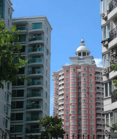 楼栋分布:小区由 4 栋高层建筑组成,其中 1 幢是格林豪泰酒店,2 幢是纯办公楼,还有 1 幢为住宅
